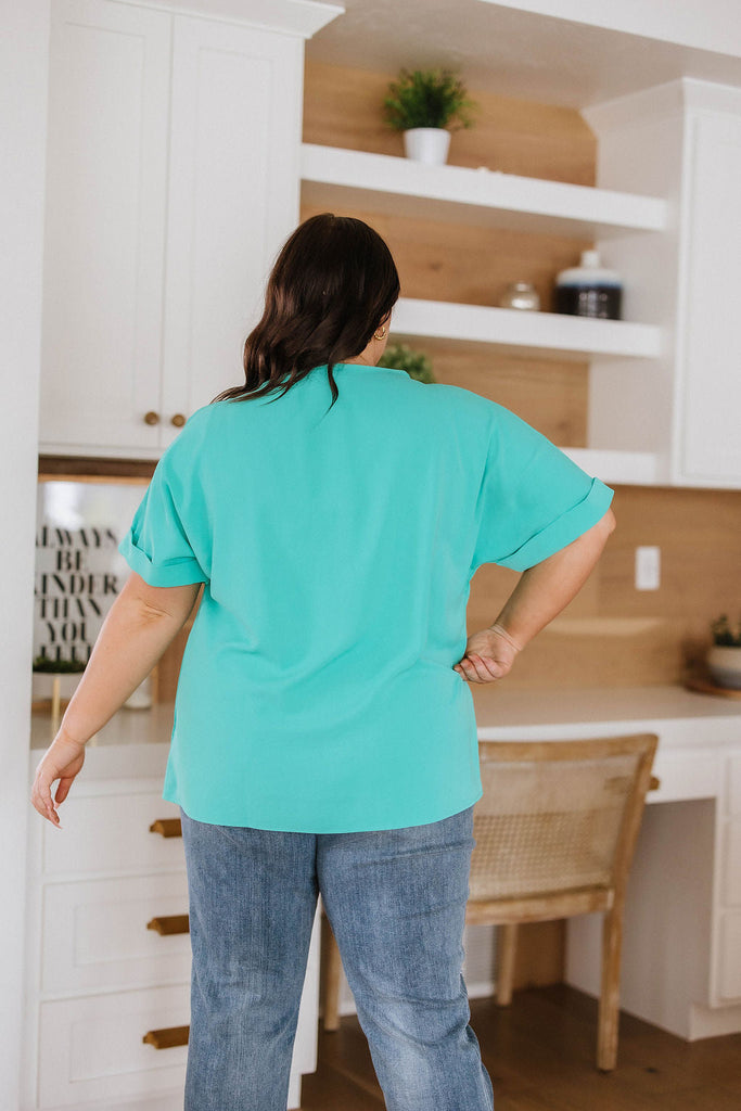 Welcome the warmer weather with the New and Noteworthy Top! Boasting a modern collar and dolman sleeves, this eye-catching top also includes a v-neckline and an easy, relaxed fit for all-day comfort. Its vibrant color adds a cheerful pop to your wardrobe. What are you waiting for?