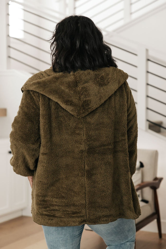 This piece is one you are not going to want to miss during the busy fall/winter season! A lightweight throw on cardigan with a beautifully constructed olive plush fur lining to keep you warm while you run your errands or if your just out grabbing a coffee.
