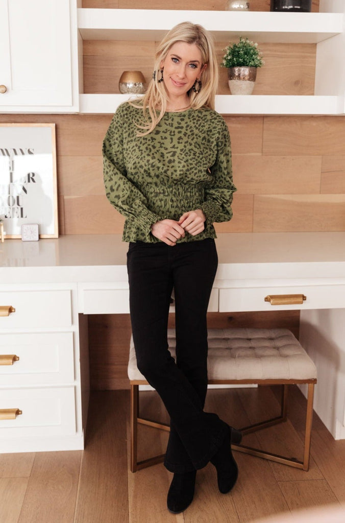 The Ariana Printed Top is the perfect combo of fashionable and comfortable! This adorable shirt features a ruched waist and cuffs, creating the cutest peplum/ruffle detail that we just can't get over! A drop sleeve and raw hem also shape this top that is basically your favorite sweatshirt and your favorite blouse combined! What could be better!?