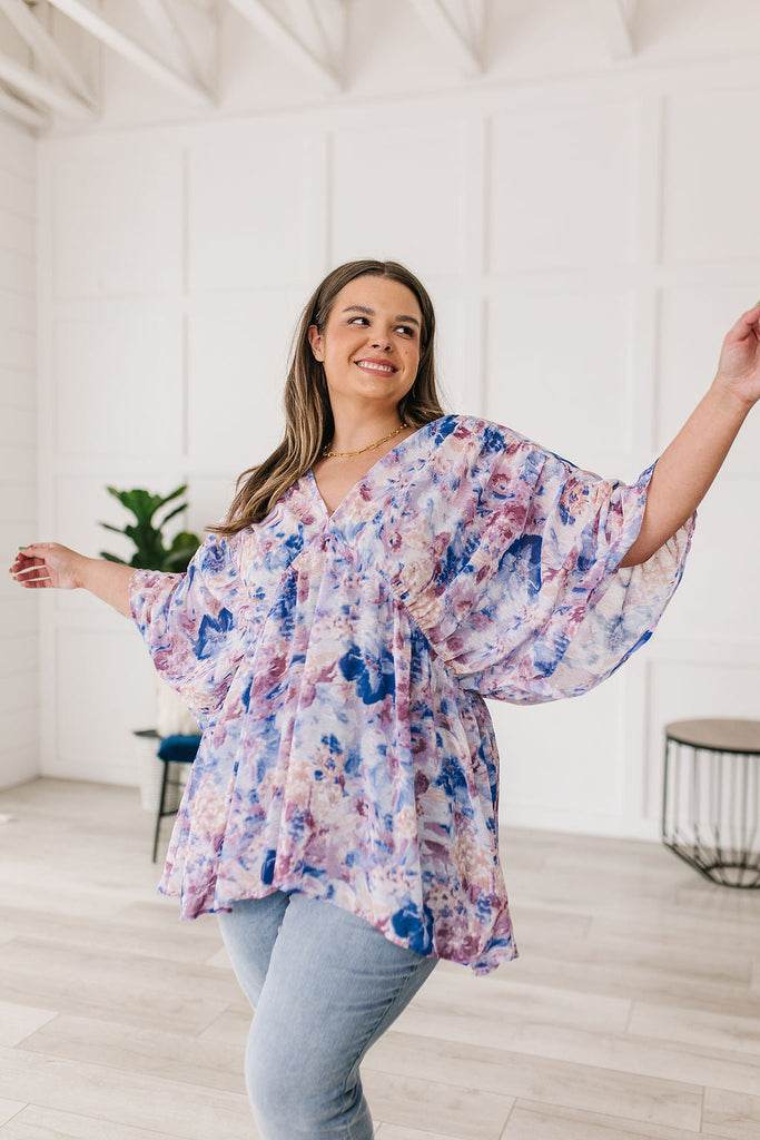 Look playful and beautiful in the Fabled in Floral Draped Peplum Top. This sheer floral chiffon top features a flirty peplum hem, oversized dolman sleeves, and a flattering v-neckline, for a look that is sure to turn heads. Add a touch of elegance to any outfit with this gorgeous top!