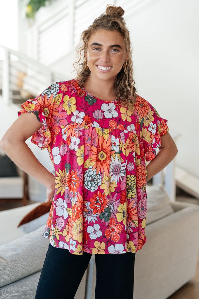 Stay comfortable and stylish with this Flit About Floral Top in Pink! Featuring a flutter sleeve, glamorous Bulgari detail, and a fun floral print, this top offers effortless elegance with a gathered bust line for a flattering fit.