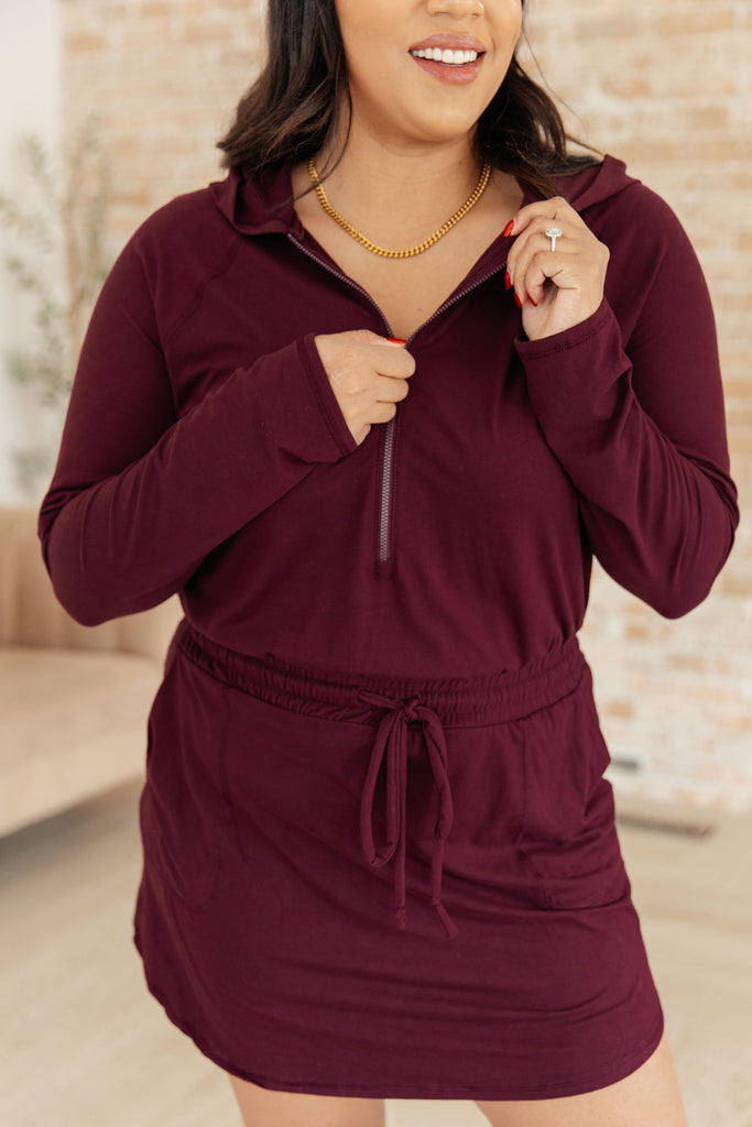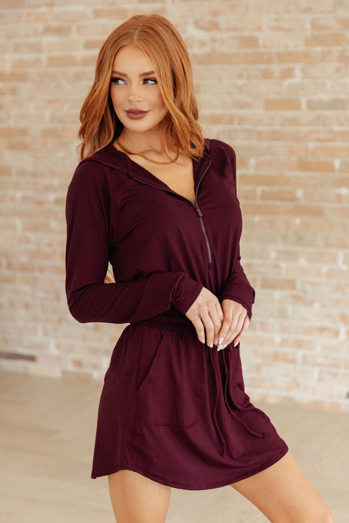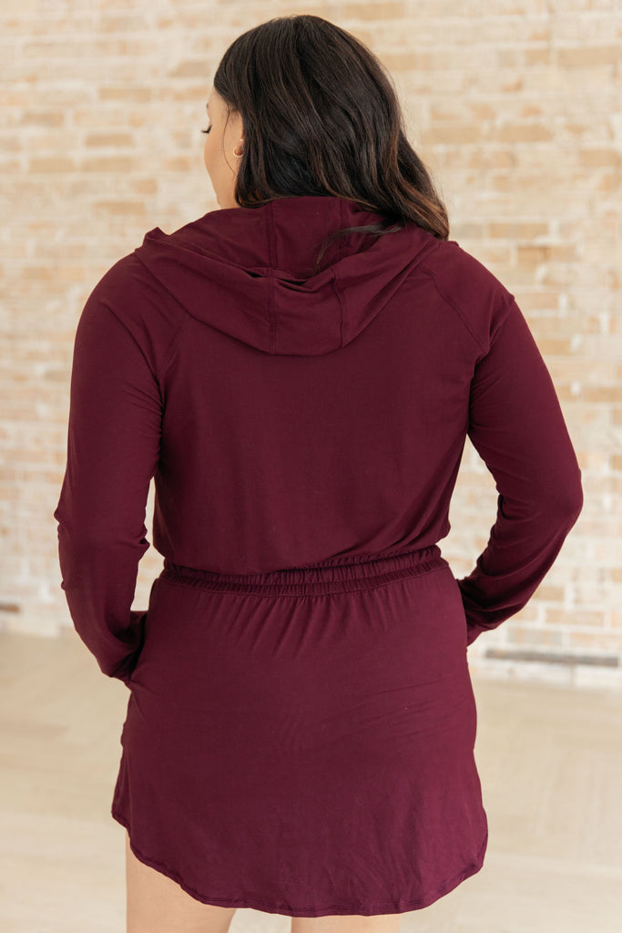 Getting Out Long Sleeve Hoodie Romper in Maroon
