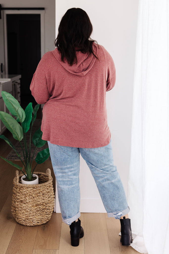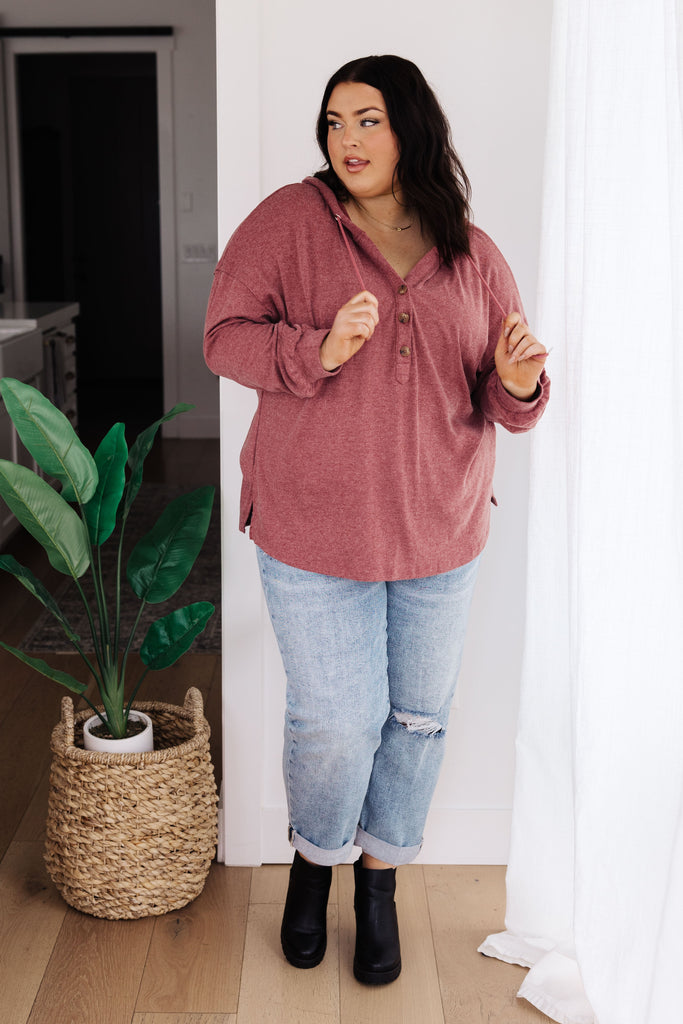 This Happier Now Henley Hoodie is perfect for a cozy, comfortable look. The jersey knit fabric provides incredible softness, while the button up henley and generous hood adds subtle style. Plus, raw hem at the sleeve and bottom gives a cool, relaxed feel. Create a unique look and feel amazing in it!