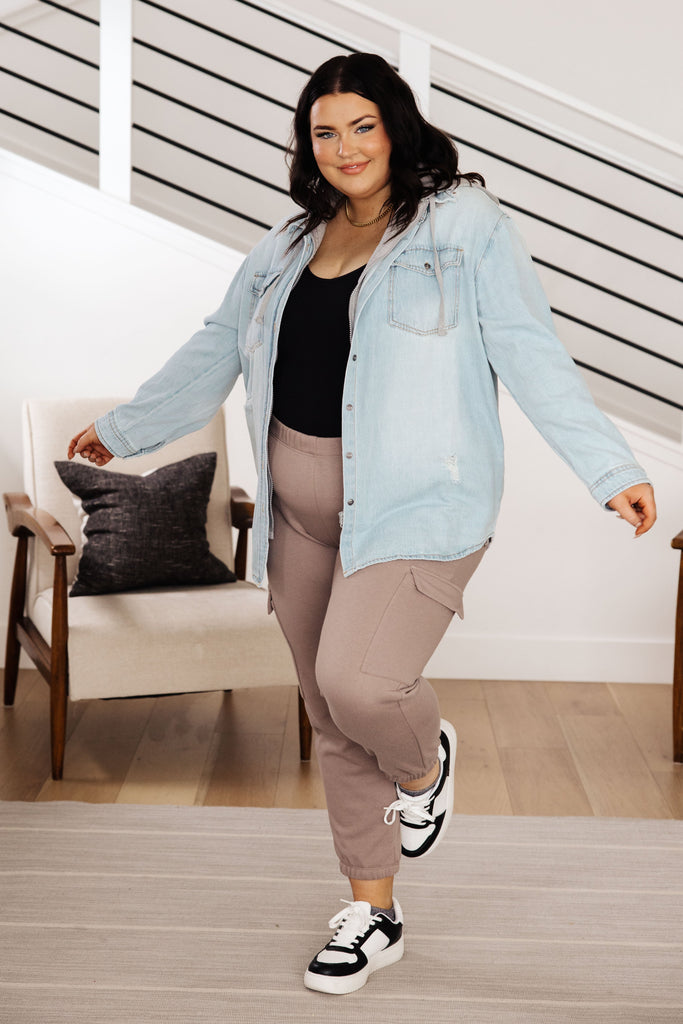 This Jordan Hooded Denim Shacket is oozing those throwback cool vibes! An iconic vintage style denim shirt gets the ultimate upgrade with an attached french terry zip up hoodie. Light distressing and a relaxed boyfriend fit combine for a timeless wardrobe staple that you won't want to take off!