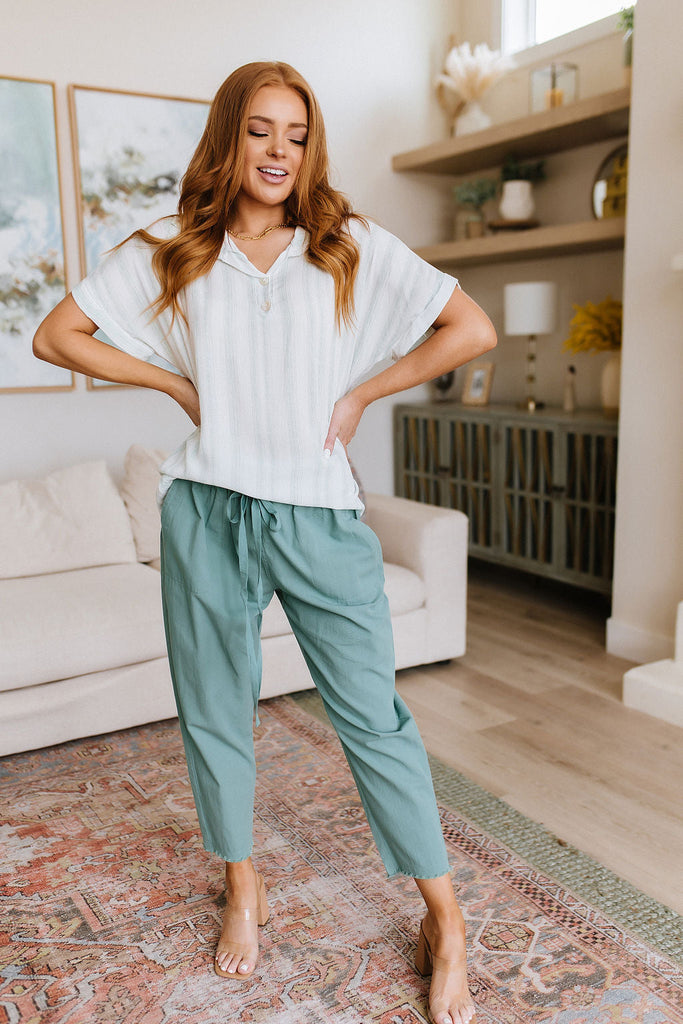 Be effortlessly stylish with the So Far Away Striped Top! Featuring a classic faux button neckline, fold over collar, cuffed dolman sleeves, and a gathered back seam for a comfortable fit. The casual stripes complete the look for an effortless, yet sophisticated style!