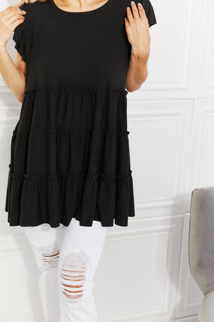 This top is both romantic and chic, making it easy to transition from day to night. The flowy top is designed for lots of movement and hiding any insecurities, with the added bonus of being bump-friendly if you're expecting! The ruffled sleeves add an extra feminine flair, creating a top that's perfect for business meetings, casual outings, or date nights.